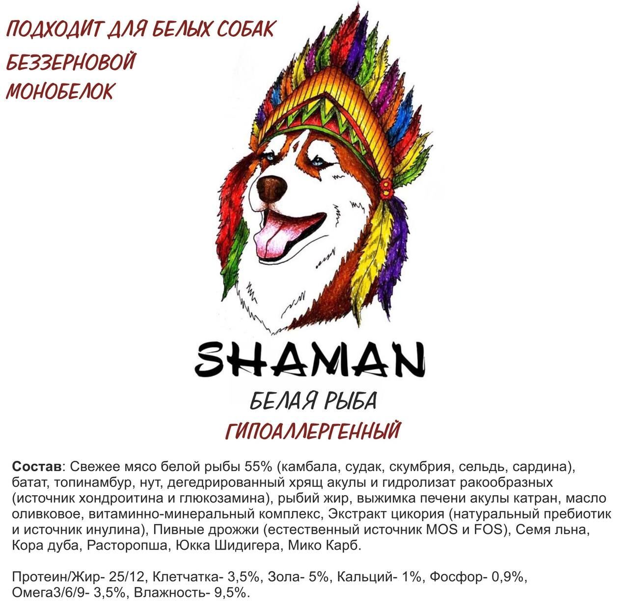 Сухой корм для собак Shaman класса Holistic беззерновой, гипоаллергенный, производится только из натуральных ингредиентов, БЕЗ ГМО и усилителей вкуса, на современном высокотехнологичном оборудовании в Городе Краснодар. Товар сертифицирован. Корм идеально сбалансирован и подходит для кормления собак с пищевой аллергией, отлично подходит для белых собак. Он прекрасно подойдет средним и крупным породам собак, таким как: Джек-рассел-терьер, Пекинес, Французский бульдог, Той-терьер, Американский кокер-спаниель, Пудель, Шпиц, Такса и т.д. Корм отечественного производства, упакован в плотный, герметичный целлофановый пакет.