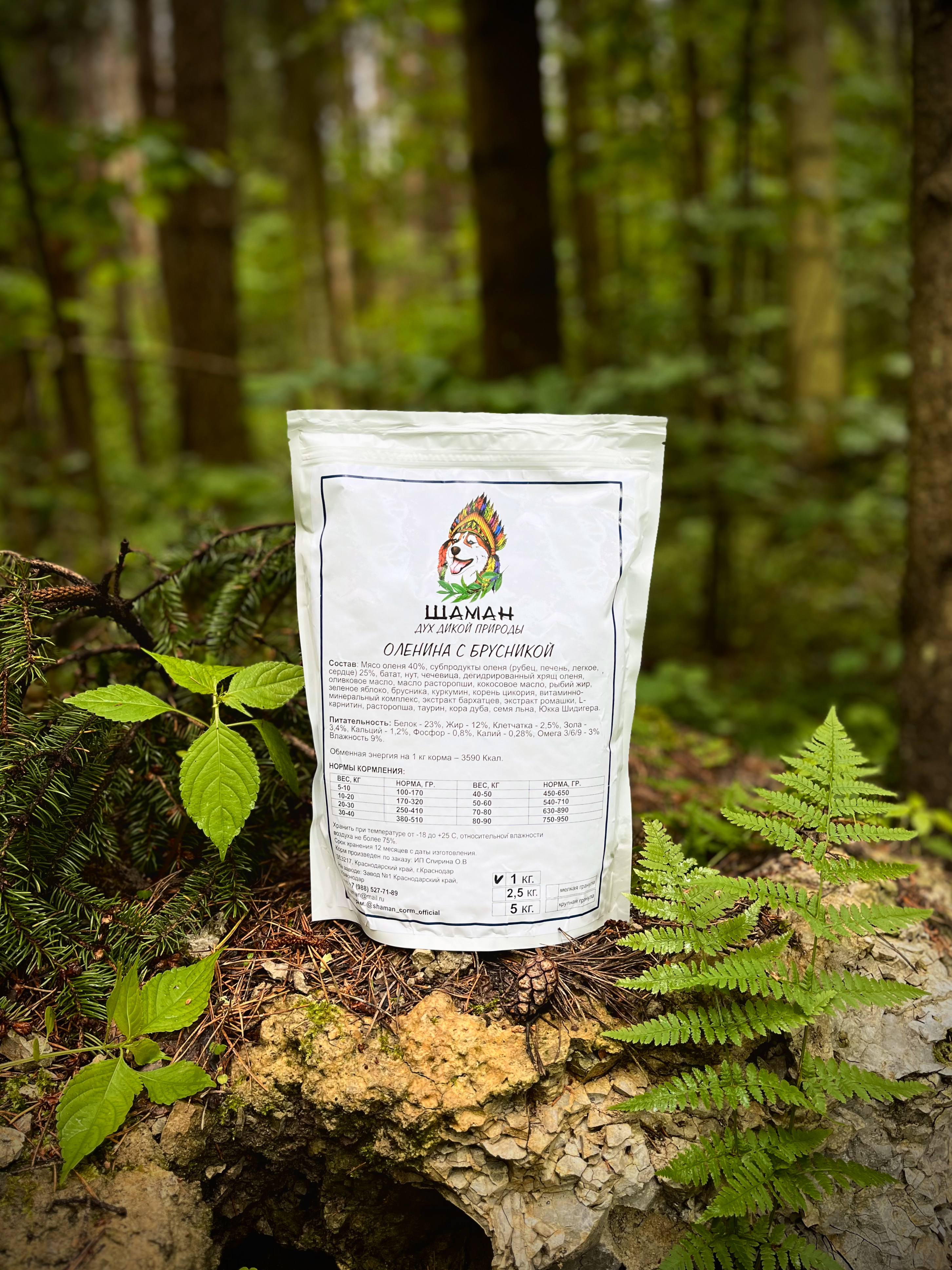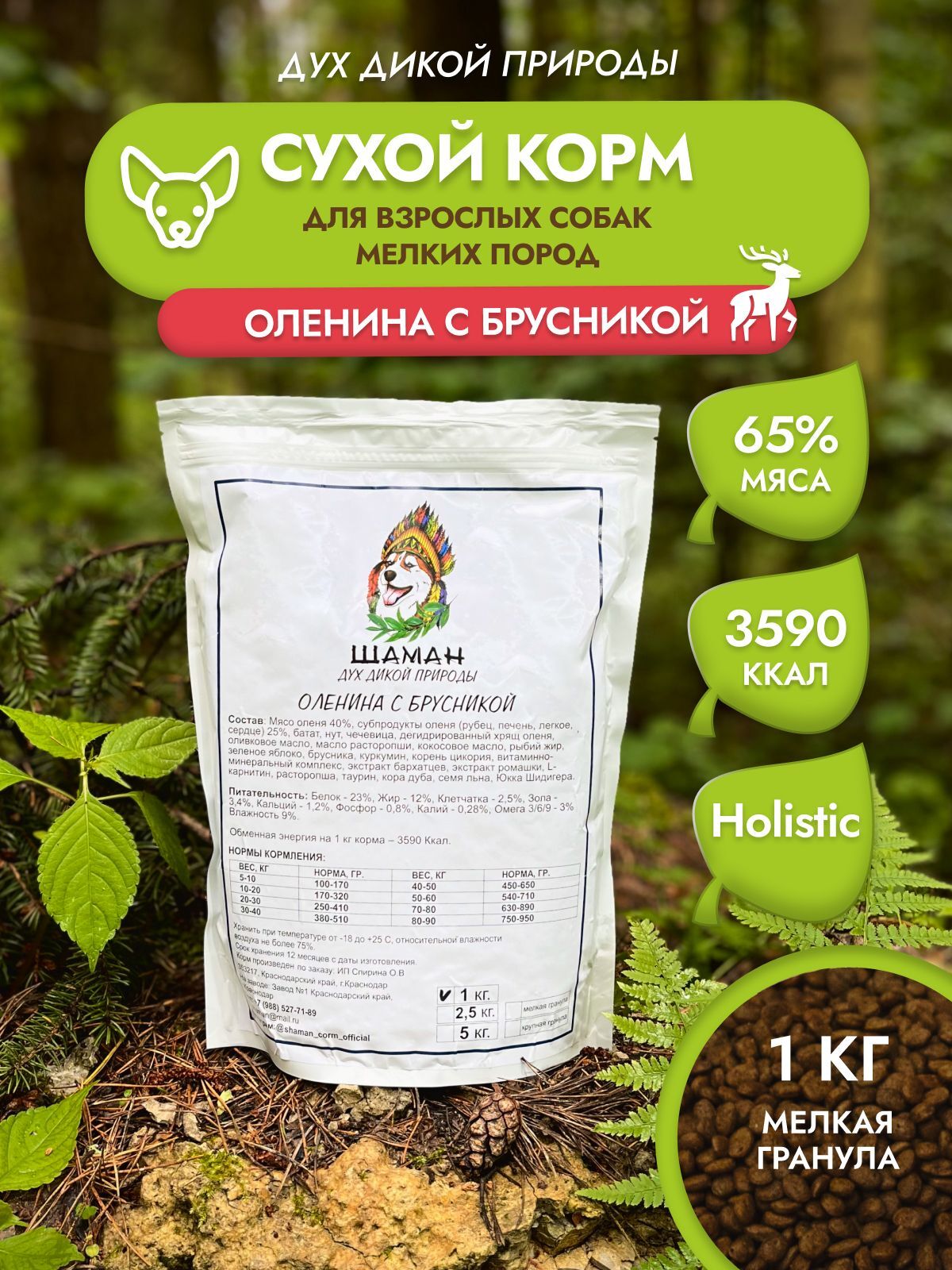 Сухой корм SHAMAN "Дух дикой природы" Оленина с брусникой 1 кг; мелкая гранула; для взрослых собак; Класс Холистик