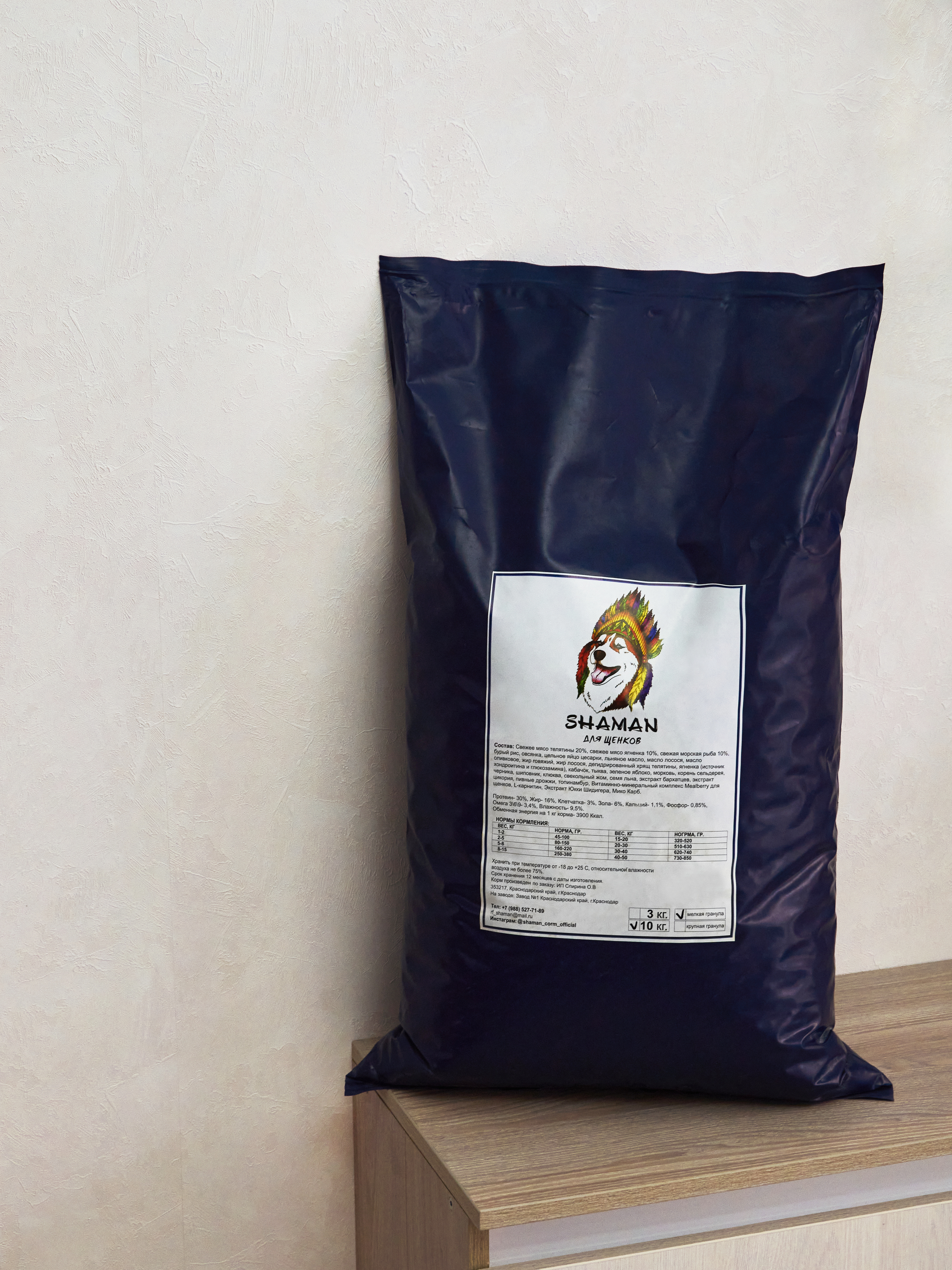 Сухой корм для щенков Shaman класса Holistic, производится только из натуральных ингредиентов, БЕЗ гмо и усилителей вкуса, на современном высокотехнологичном оборудовании в Городе Краснодар. Товар сертифицирован. Корм идеально сбалансирован и подходит для кормления щенков разных пород. Он прекрасно подойдёт как для крупных, так и для мелких пород. Корм отечественного производства, упакован в плотный, герметичный целлофановый пакет.