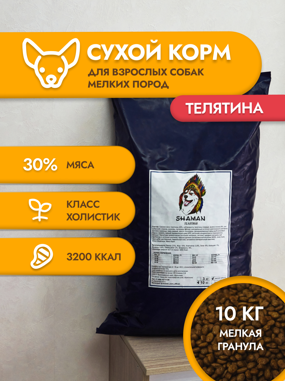Сухой корм для собак Shaman класса Holistic, производится только из натуральных ингредиентов, БЕЗ гмо и усилителей вкуса, на современном высокотехнологичном оборудовании в Городе Краснодар. Товар сертифицирован. Корм идеально сбалансирован и подходит для кормления собак разных пород. Он прекрасно подойдёт мелким породам собак, таким как: Джек-рассел-терьер, Пекинес, Французский бульдог, Той-терьер, Американский кокер-спаниель, Пудель, Шпиц, Такса и т.д. Корм отечественного производства, упакован в плотный, герметичный целлофановый пакет.